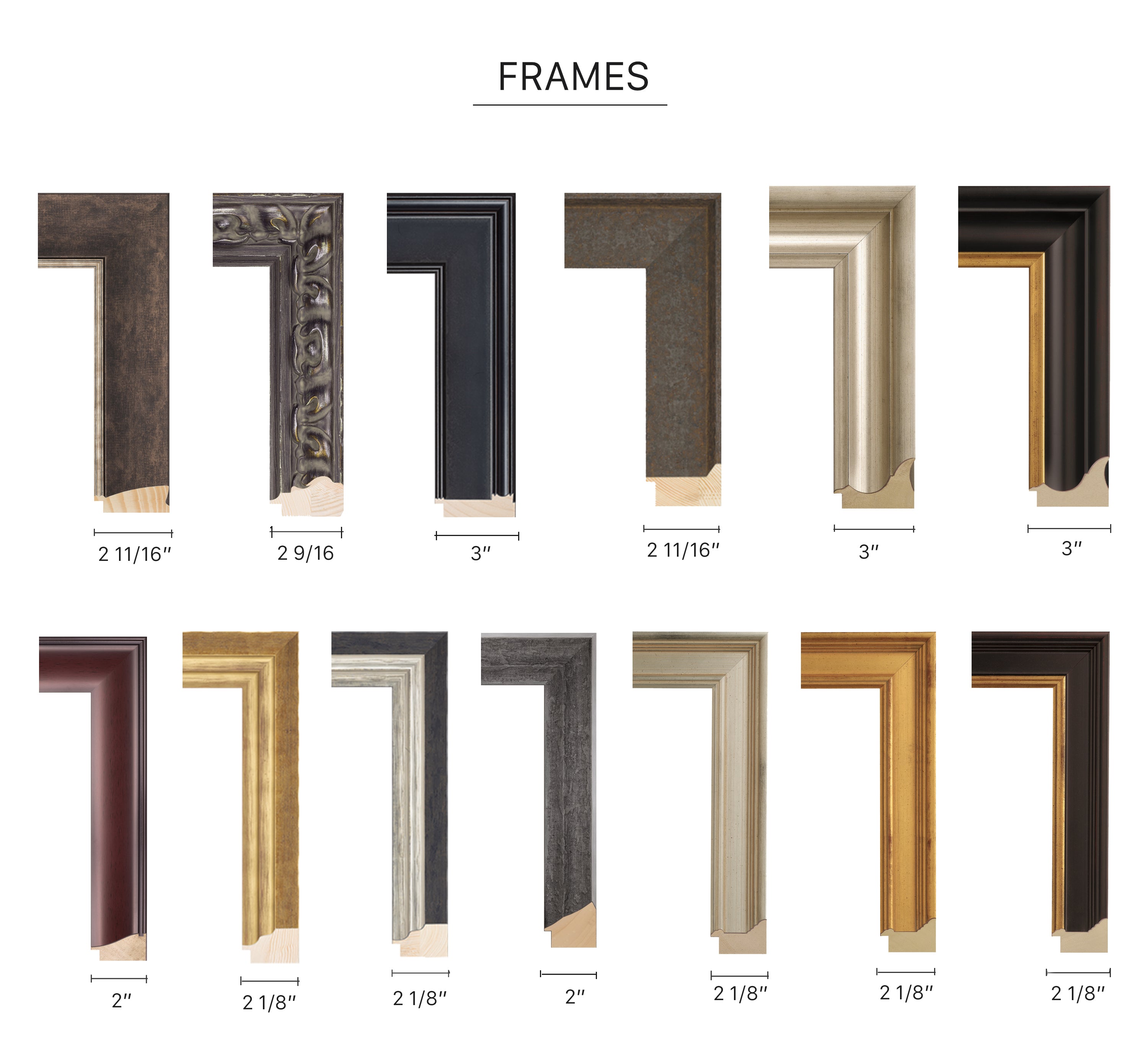 • Framed Canvas - print is framed and shipped in a box. There are 10 wooden frames for you to choose from. We use premium quality wooden moldings to frame all our artwork.